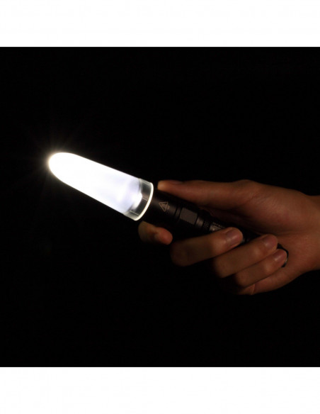 This Diffuser wand from Nitecore is attached to the flashlight bezel, and will soften the light output and broaden the flashlight's angle of visibility, which is ideal for tent illumination, signaling and map reading.