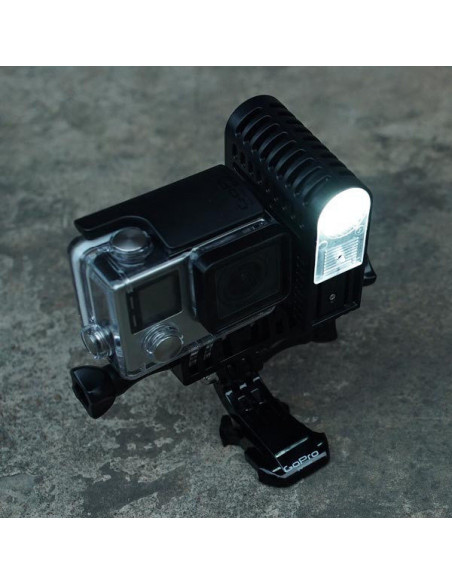 The video lamp has the same mounting as a GoPro camera, making it very easy to pair the devices. In addition, the lamp is waterproof up to ten metres.
