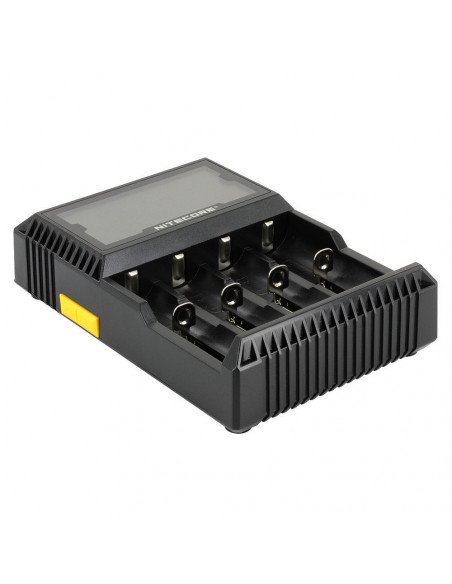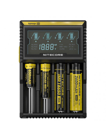The Nicecore D4 is a universal smart Charger compatible with almost all cylindrical rechargeable batteries, thus eliminating the need to own several chargers. The D4 automatically detect li ion, NiMH and Ni Cd batteries and through manual selection is also capable of charging LifePo4 batteries. Intelligent charging circuitry selects the optimal charging mode (CC,CV and dV/dt) for a given battery and each of the D4’s four microcomputer controlle charging slots then monitors and charges the battery independently. Furthermore, an integradeted digital LCD screen clearly displays charging progress, voltage, current and time while an intelligent automatic power off function terminates current when charging is complete. The nitecore D4: The world’s most advanced fully automatic digital charger. It’s as simple as insert, detect and charge,