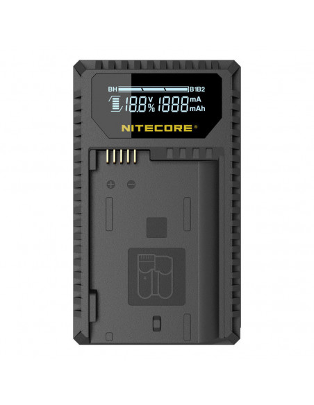 The Nitecore UNK1 Charger is specially designed for the Nikon EN EL14 and EN EL15 batteries. Thanks to the high power it charges the battery quickly. The UNK1 battery charger has an output of up to 1000mA. This charger is equipped with a handy and smart LCD display. It provides real time information on the battery status, voltage, charge current and battery temperature. So you are always aware of the status of the battery. The included USB cable that provides power to the charger is hidden on the side. As a result, it does not take up any extra space. This battery charger can not only be powered by mains electricity, but also by an external source such as a power bank or solar panel.,