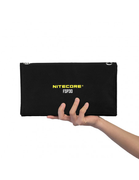 Compact and powerful The Nitecore FSP30 Solar Panel 30W is small and light enough to easily carry in a backpack to charge phones and other devices. Equipped with the SunPower solar cell, the FSP30 continues the high cell efficiency of the FSP series. The FSP30 has an excellent cell efficiency of 24%, which is 60% higher than conventional solar panels, allowing it to achieve stable energy conversion even in cloudy weather. Highlights Foldable solar panel Excellent cell efficiency of 24% Weighs only 625 g Compact The FSP30 weighs just 625g, which is 57g lighter than a 12.9" iPad Pro. So you can easily carry it in a backpack. Besides the maximum output power of 30 W, the FSP30 is equipped with dual USB A + USB C charging ports, while 18 W PD charging speed is available for the USB C port, making it perfect for efficiently charging devices such as smartphones outdoors. Durable The voltage stabilisation module of the FSP30 can regulate the output voltage based on different intensities of sunlight to ensure stable output and a safe charging process for devices. Meanwhile, the solar panel is covered with light and thin PET protective material, with high scratch and wear resistance. Moreover, the FSP30 is a waterproof device with IPX5 rating, so it is not afraid of rainy weather., Dimensions unfolded: 295 mm x 880 mm x 4 mm Dimensions folded: 295 mm x 170 mm x 45 mm Weight: 625 g Number of panels: 4 Cell efficiency: 24% Total output power: 30W (MAX) Output ports: USB A x 2, USB C USB A output: Total 5V=3.1A USB C output: 5V=3A / 9V=2A , 1 x Nitecore FSP30 Solar Panel 30W