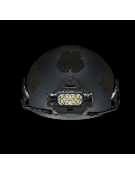Ultra high triple output metal tactical headlamp The Nitecore HC65M UHE is a tactical version designed specifically for tactical helmets. The âMâ indicates that the lamp is equipped with an NVG mount. The HC65 UHE has been modified by using an NVG mount to allow faster and more stable attachment to tactical NVG helmets, making the lamp compatible with other NVG helmets as well, Highlight NVG mount Max light output of 2,000 lumens High quality aluminium construction , Max. light output: 2,000 lumens Maximum beam distance: 222m Maximum beam intensity: 12293 cd Max. Run time: 82 h 0 m / 3.41 d LED: 8 x NiteLab UHE LEDs Battery: 4,000mAh 18650 Li ion battery Special modes: Location beacon, SOS, Flashing warning light Beam colour: White light, Red light Dimensions: 90.1 x 51.5 x 45.2 mm Weight: 143 g , 1 x Nitecore HC65M UHE 1 x NL1840HP Li ion battery 1 x USB C to USB C charging cable 1 x Storage bag