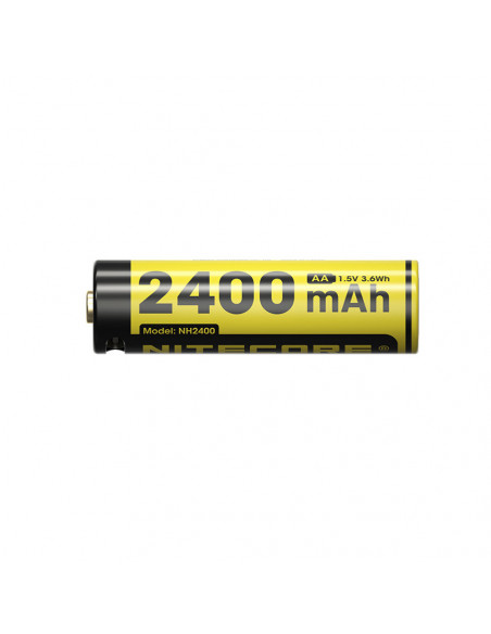 Convenient, powerful and eco friendly The Nitecore NH2400 USB C Rechargeable 1.5V Li ion AA Battery is a battery with a capacity of 2400 mAh and a constant voltage of 1.5 volts. Thanks to its built in USB C port, you can charge it directly without a separate charger. Highlights Capacity: 2400 mAh Voltage: 1.5 V Charging method: USB C (5V, 0.5A) Environmentally friendly: free of mercury, lead and cadmium The battery is ideal for devices that require a stable 1.5V voltage, such as torches, GPS devices, remote controls and toys. Please note they cannot be charged in standard AA chargers and are only suitable for charging via the built in USB C port. , Rated capacity: 2,400mAh Rated voltage: 1.5V Rated energy: 3,600mWh Input: USB C: 5Vâ0.5A Diameter: 14.5 mm Length: 50.3 mm Weight: 21g , 1 x NH2400