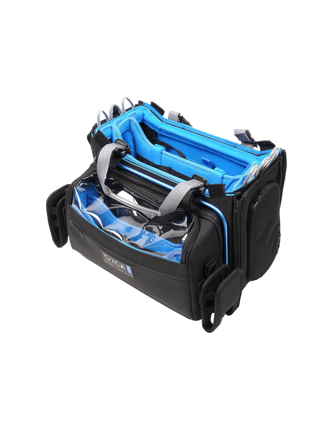 Lydtaske, der giver maksimal beskyttelse af følsomt udstyr takket være den slidstærke ydre aluminiumsramme, indvendig honeycomb-ramme, skumbeskyttelse og EVA.Designet omhyggeligt af fotografer og lydeksperter til at bære, beskytte og gøre det muligt at bruge alle slags lydmixere på ethvert sted.EgenskaberVerdens første lydtaske med aluminiumsramme og den første, der giver adgang til udstyret fra 6 retninger"ORCA Lift" - den første løsning i verden til at hjælpe lydmanden med at placere en mixer i en hvilken som helst størrelse på det ønskede niveau i taskenSystem med gliderem til at holde mixeren fast i tasken.Overdel i gennemsigtig TPU sikrer nem visning af udstyretUnikt batterirum med gummiinddelerAftageligt bærehåndtag og skulderremTo store lommer til lydtilbehørTo eksterne flytbare poser og 9 elastikbånd til at fastholde en trådløs udrustningElastiske stropper forrest til at holde en mikrofonstang eller kablerKan tilsluttes Orca Harness for at reducere belastningen hos den, der bærerInteriør af lyseblåt børstet polyester synliggør udstyret