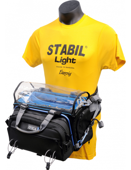 ORCA OR-370 er et avanceret, letvægts bælte, der hjælper dig med at bære din lille eller mellemstore lydtaske på hoften uden at lægge pres på dine skuldre. Det er forbundet til lydposen via fire karabinhager for hurtig tilslutning og frigørelse og er ideelt til arbejde på udendørs locationoptagelser. Bæltet er godt polstret med hukommelsesskum for fuld komfort og kan bruges som frontalholder til gimbals eller boomstænger.BeskrivelseHovedfunktioner:4 forbindelsesspænderNem tilslutning til enhver Orca-lydtaskeKomfort hukommelsesskum polstringUnik justering roterende systemLeveres med lille bæretaskeModellængde: 70 cmBredde: 30 cmVægt: 0.5KgBemærk venligstDette er et taljebælte. Der medfølger ingen tasker, gimals eller bomstænger. Billederne er til illustration af brugen af bæltet