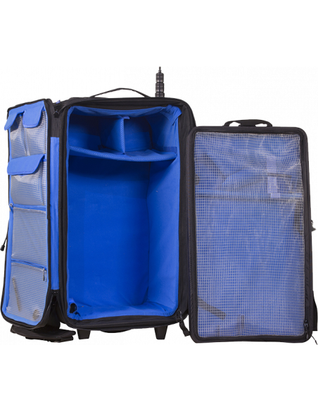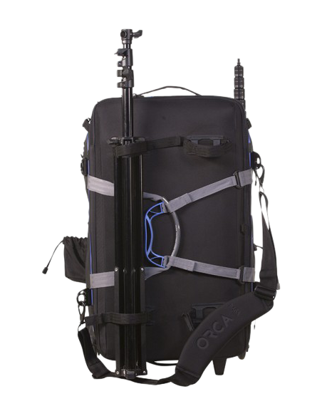 Orca OR-48 Sound Cart er en stor trolleytaske designet til at transportere og opbevare alle dele af en lydudrustning, som f.eks mixer, mikrofonboom og kabler, hele vejen til et optagelsessted.OR-48 har et stærkt indbygget trolleysystem og holdbare hjul samt en polstret skulderrem. Tasken giver en meget god beskyttelse af indholdet med ekstern aluminiumsramme, intern honeycomb-ramme, skumbeskyttelse og EVA.Interiøret er fleksibelt og rummene kan placeres efter behovet. Her er også to yderlommer til at gemme ekstra tilbehør og to specielle lommer til at holde boom eller stativet.Overdelen har en lomme med lynlås samt en hård yderdel, der er perfekt til ekstra tilbehør, mens den også tjener som beskyttelse til interiøret. Den hårde ydre kan bruges som et bord ude, hvor du kan stille din lydmixer. OR-48 som en bærbar arbejdsstation!Tasken leveres med en speciel hovedtelefonholder og indbyggede LED-lamper for at belyse interiøret i mørke omgivelser.