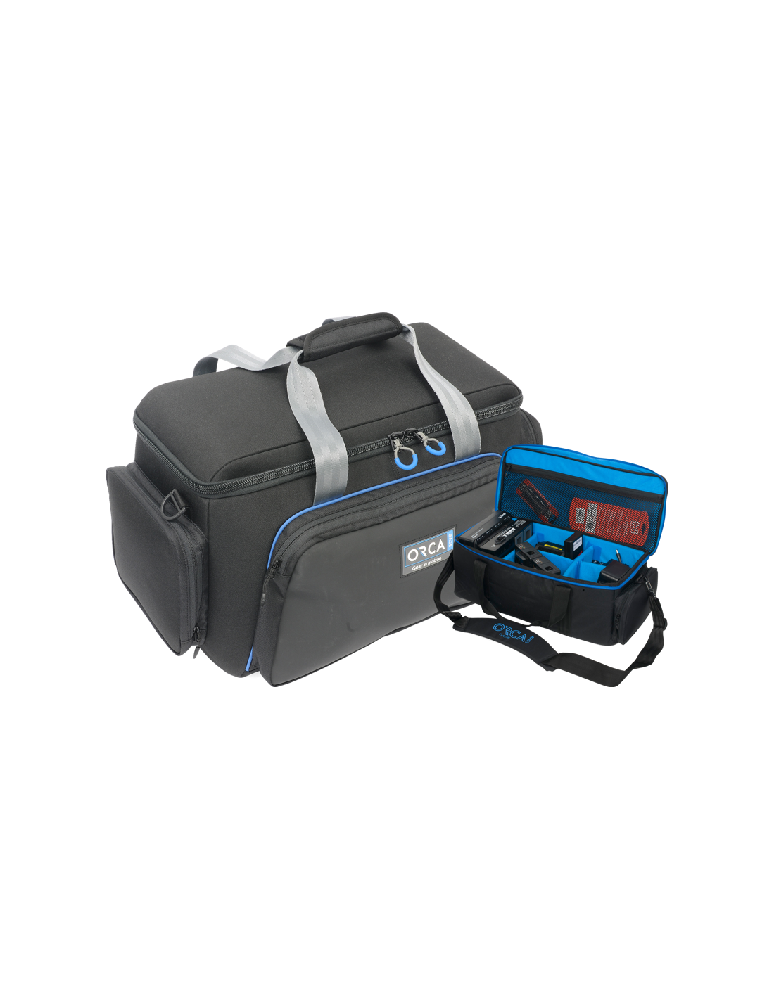 Orca OR-508 Klassisk skuldertaske LilleTasken er let, alsidig og nem at bære. Den er meget beskyttende og har en bred åbning i toppen, som gør det nemt at betjene og se udstyret.Vigtigste funktioner:Indvendig foring af lyseblå børstet polyester for nem visning af udstyrJusterbare indvendige skillevægge3 store udvendige lommerTop krog-og-løkke bærehåndtagPolstret skulderrem til behagelig rejse2 forreste ærmer til indsættelse af vognNavneskiltTasken anbefales til transport og beskyttelse af kameraer som f.eks:Sony PXW-Z90, PXW-Z150Canon XA10, XA20, XA25Panasonic AG-UX90, AG-UX180Blackmagic URSA Mini (alle modeller)Specialtilbuddet inkluderer en gratis OR-128 Universial Accessories Medium Case