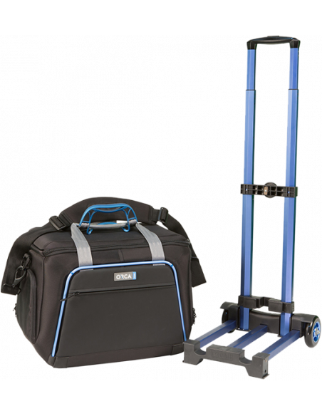 ORCA OR-70 er en trolleyvogn fremstillet af ekstremt slidstærkt og let aluminium.Orca Trolley System er lavet til at kunne klare hård behandling på alle steder, og med sit unikke koblingssystem kan det nemt tilpasses alle Orcas belysnings- eller skuldertasker.Foldes nemt sammen til opbevaring.EgenskaberUnikt koblingssystem til Orca-taskerFylder kun lidt, når den er foldet sammenStærke aluminiumshjul