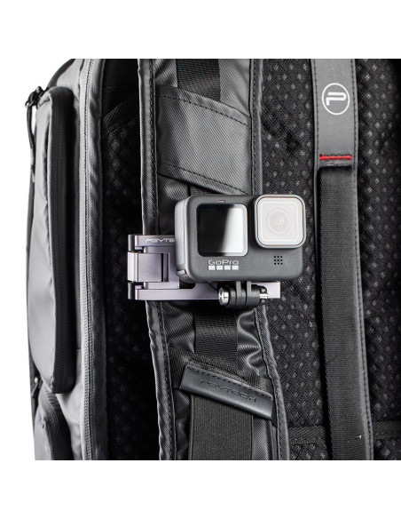 Keep your hands free With the PGYTECH Action Camera Strap Holder, you can safely and effectively attach the OSMO Pocket, GoPro and other action cameras with GoPro universal interface to your backpack's shoulder strap. It is adjustable, meets the thickness of most backpack straps and enhances the shooting experience. Quick release design helps to quickly attach and remove the camera. Highlights Fits most action cameras with GoPro universal interface Meets the thickness of most backpack straps. Quick release design for quick attachment , Material: Aluminium, PA, silica gel Fits most action cameras with GoPro universal interface Quick release design Compatible with backpack strap, thickness: â¥1 mm, â¤10 mm and width: â¤65 mm Dimensions: 91 x 38 x 47 mm Weight: 80 g , 1 x PGYTECH Action Camera Strap Holder 2 x Quick release head 1 x User guide