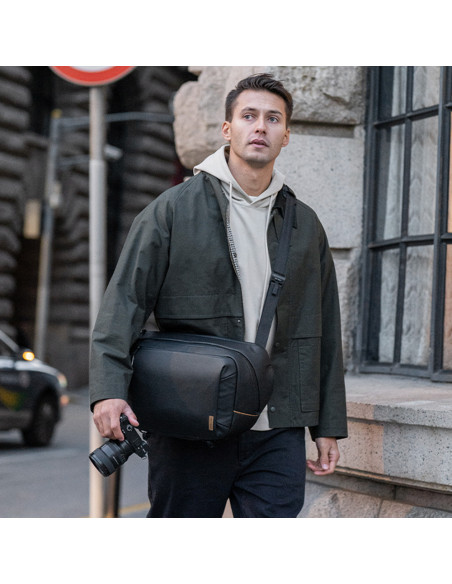 Combine style and functionality The PGYTECH OneGo Solo V2 10L seamlessly combines style and functionality, making it ideal for commuting and photography in different scenarios. With a user friendly large opening, customisable dividers and multiple pockets, it ensures organised and accessible storage. The high quality PU coated fabric ensures durability and features such as battery badges enhance convenience. The front zip pocket fits everyday items and a hidden side pocket lets you store your water bottle. On the back is a separate 14" MacBook laptop sleeve. Highlights Seamlessly combines style and functionality A large opening design Careful compartmentalisation with many internal pockets A hidden side pocket lets you store your water bottle. At the back is a separate 14" MacBook laptop sleeve Durable and easy to use And the shoulder strap has a quick release buckle for easy adjustment of the strap length, and the swivel end increases comfort. For users with different left and right shoulder preferences, the strap is detachable and can be installed accordingly. The bag has YKK zips for waterproof durability and also includes useful details such as a hidden Airtag pocket and a removable bottom strap for added versatility. , A large opening design Adjustable dividers meet protection needs and badges with battery level indicators increase ease of use. Hidden on the side, the water bottle pocket can be folded when not in use. A hidden side pocket lets you store your water bottle. High quality PU coated material for scratch resistance, splash resistance, durability and easy cleaning; Independent laptop sleeve for a 14" MacBook; Shoulder strap with quick release closure for easy length adjustment; Rotatable shoulder strap end for greater comfort while carrying; Detachable strap for users with different left or right shoulder preferences; YKK zips Discreet Airtag pocket Removable bottom strap for attaching tripods or umbrellas. Materials: 85% polyester, 15% polyurethane Pack size: 448mm*283mm*175mm External size: 450mm x 250mm x 160mm Internal size: 430mm x240mm x 140mm Weight: 0.73kg , 1 x PGYTECH OneGo Solo V2 10L(Obsidian) 3 x Divider 2 x Accessory Strap