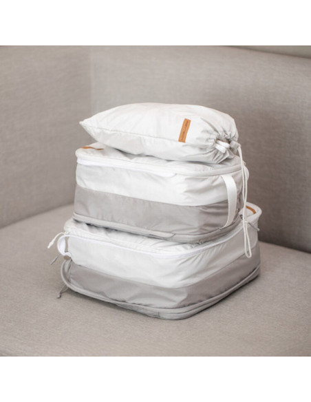 Pack all the clothes you need Made of wrinkle free nylon, the PGYTECH Clothes Storage Set is ideal for storing your clothes. Its two colour compartments keep dirty and clean clothes separated. Highlights Separate clean and dirty Easy to store Flexibly compressed Simple and stylish Wrinkle free nylon It can be rolled, folded or wrapped into almost any shape without adding extra weight. Compressible design With the centre zip for flexible compression, you save space and can store it easily. Different sizes for different garments S Underwear and socks M Blouses and t shirts L Jackets and sweatshirts, Clothing storage set Material: Polyester Weight: 437 g , 1 x PGYTECH Clothes Storage Set