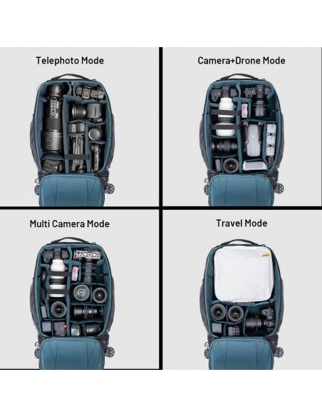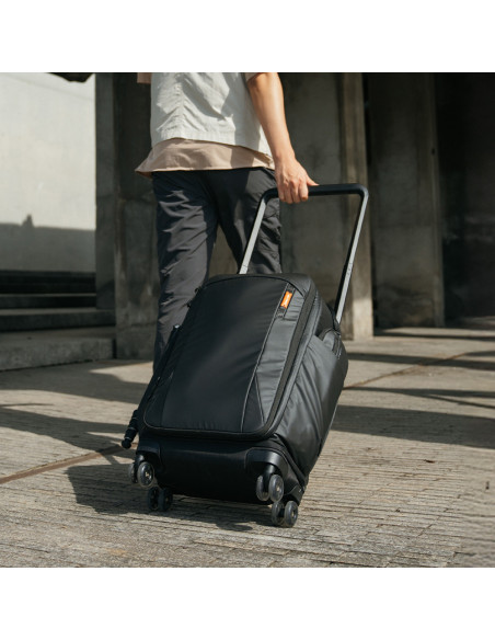 Switch with ease, ready to roll The PGYTECH Roller Camera Backpack (Space Black) is a versatile camera bag with two modes: trolley and backpack mode. Dual rows of quiet wheels and a wide aluminium alloy trolley bar make the bag easy to transport, even with lots of equipment. The PGYTECH Roller Camera Backpack is an ideal choice for photographers looking for flexibility, security and durability. Highlights Two modes of use Expandable 10L front pocket Adaptable storage system Adaptable storage system Backpack mode offers quick wheel quick release for flexible transition to more difficult terrain. The main compartment features a customisable DIY divider system, ideal for safe storage of cameras, lenses, and accessories. Expandable 10L front compartment The bag includes an expandable 10L front compartment, a dedicated space for a 16 inch laptop and iPad, and side pockets for water bottles or tripods. Made of splash proof, scratch resistant PU material, this lightweight bag offers optimal protection and durability. YKK zips, a rain cover and a hidden AirTag pocket provide extra security. Organisation bag Designed for batteries and accessories, this organiser can be used in a side pocket or as a carry bag., Material: 15% polyurethane 85% polyester Product dimensions: Without wheel: 540 x 360 x 250 mm Product dimensions: With wheels: 590 x 360 x 250mm Internal dimensions: 520 x 340 x 150mm Weight: 3.6kg , 1 x PGYTECH Roller Camera Backpack (Space Black) 1 x Digital storage bag 1 x Rain cover 2 x Strap