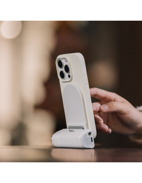 Elevate your shooting effortlessly The PGYTECH MagCam Phone Grip(Misty Gray) is a versatile modular grip designed for smartphone photography enthusiasts, providing a camera level shooting experience. A quick release mechanism allows it to be separated into three parts: Magnetic wireless charging module/Bluetooth remote control module/Charging grip module. Highlights Modular design Quick release mechanism Power bank functionality Modular design The bluetooth remote control, charging handle and stand modules can be detached and used independently. Quick Release mechanism The grip and stand connect seamlessly with a slide in design and can be quickly released with a single button. 5W wireless charging The charging grip transfers power to the stand via PIN connectors, while the wireless charging coil powers the smartphone. EDC friendly design Just 3.5mm thick (5.5mm at its thickest point) and weighing 48g, the stand has rounded corners for comfort and minimises size when attached to the phone. Landscape and portrait stand functionality A metal stand supports angles up to 58°, suitable for iPhone 12 series and newer devices in both directions. Power bank functionality Equipped with a built in 3000mAh 18650 battery, the grip includes a Type C port that functions as both a charging and output port, delivering 10W of power. Users can directly connect a cable to charge their phone. , Materials: ABS+PC, aluminium alloy, zinc alloy Weight: 145g Magnetic standard vertical suction: 18N Battery capacity: 3000mAh Rated capacity: 2100mAh Type C input: 5V/2A Type C output: 5V/2A Wireless charging output: 5V/1A PIN output: 5V/1A Battery indicator: The handle has four LED indicators that light up sequentially from bottom to top, for battery levels of 25% / 50% / 75% / 100%. , 1 x Magnetic wireless charging module 1 x Rechargeable handle module (with remote control) 1 x Magnetic ring 1 x Lanyard 1 x User guide