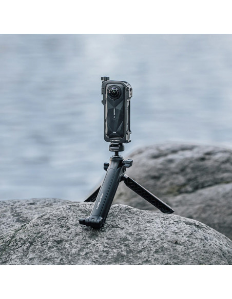 Photograph freely, but protect fully The PGYTECH Insta360 X5 Camera Cage offers sturdy protection and maximum functionality for your Insta360 X5. Made of durable aluminium alloy with a fully wrapped metal frame, this cage optimally protects your camera without impeding access to buttons, battery or microphone holes. Highligths Quick release button Versatile extension Horizontal and vertical shooting Silicone lens hood Secure locking, easy installation Split body design with a rotary knob ensures quick and safe installation, prevents accidental release or dropping perfect for worry free outdoor photography. Durable aluminium alloy ensures all round protection Made of high strength aluminium alloy with an all metal frame, the cage has a built in rubber pad for enhanced protection, making it ideal for action packed adventures. Precise fit, functionality without compromise The cage is custom made for the Insta360 X5 and ensures seamless access to buttons, battery and microphone holes. The cut out at the top minimises signal interruption for optimal performance. Expansion ports on the side allow accessories to be added, and the base supports both the Insta360 quick release system and standard 1/4â mounts. Silicone lens hood for extra protection The close fitting silicone lens hood protects against dust, scratches and bumps and provides peace of mind during storage and transport., Material: Aluminium, silicone Weight: 62 g 145 x 62 x 22 mm Compatibility: Insta360 X5 action camera