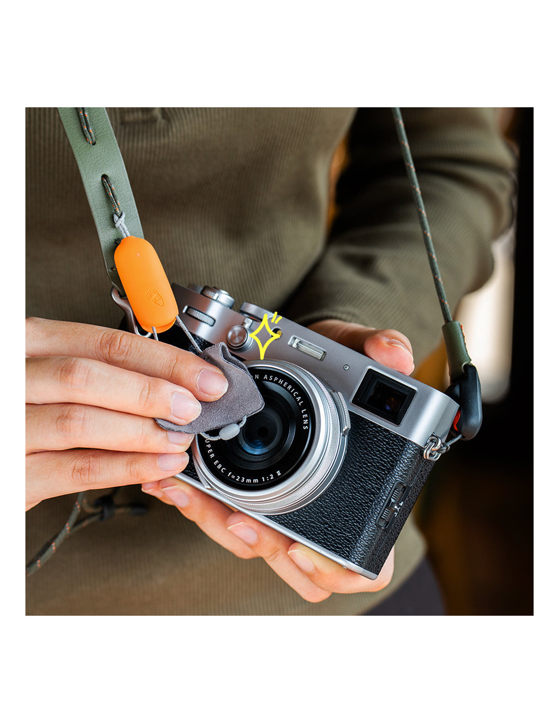 FA's handy indbygget lens rengøringsklud sikrer, at dit kamera altid er klar til at fange din næste skabelse.