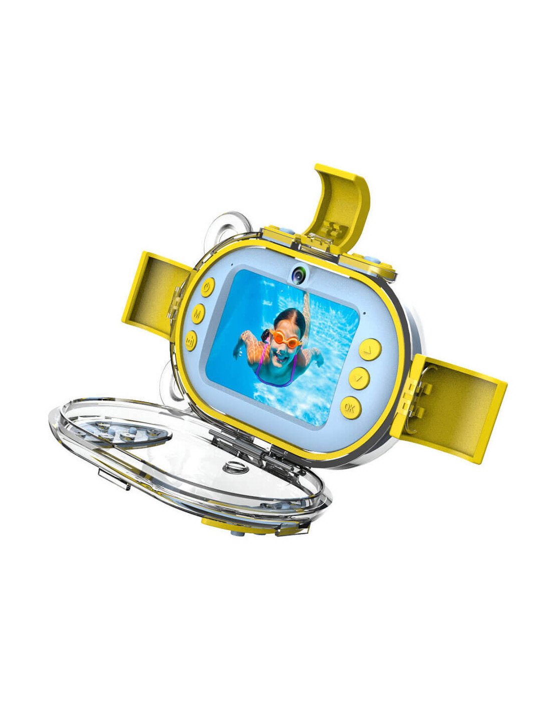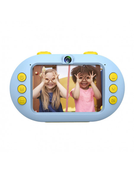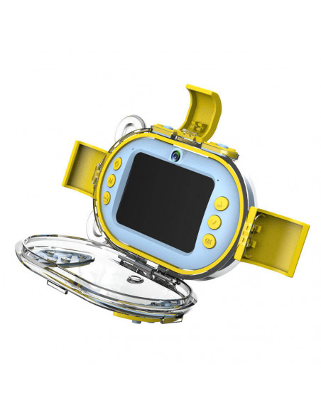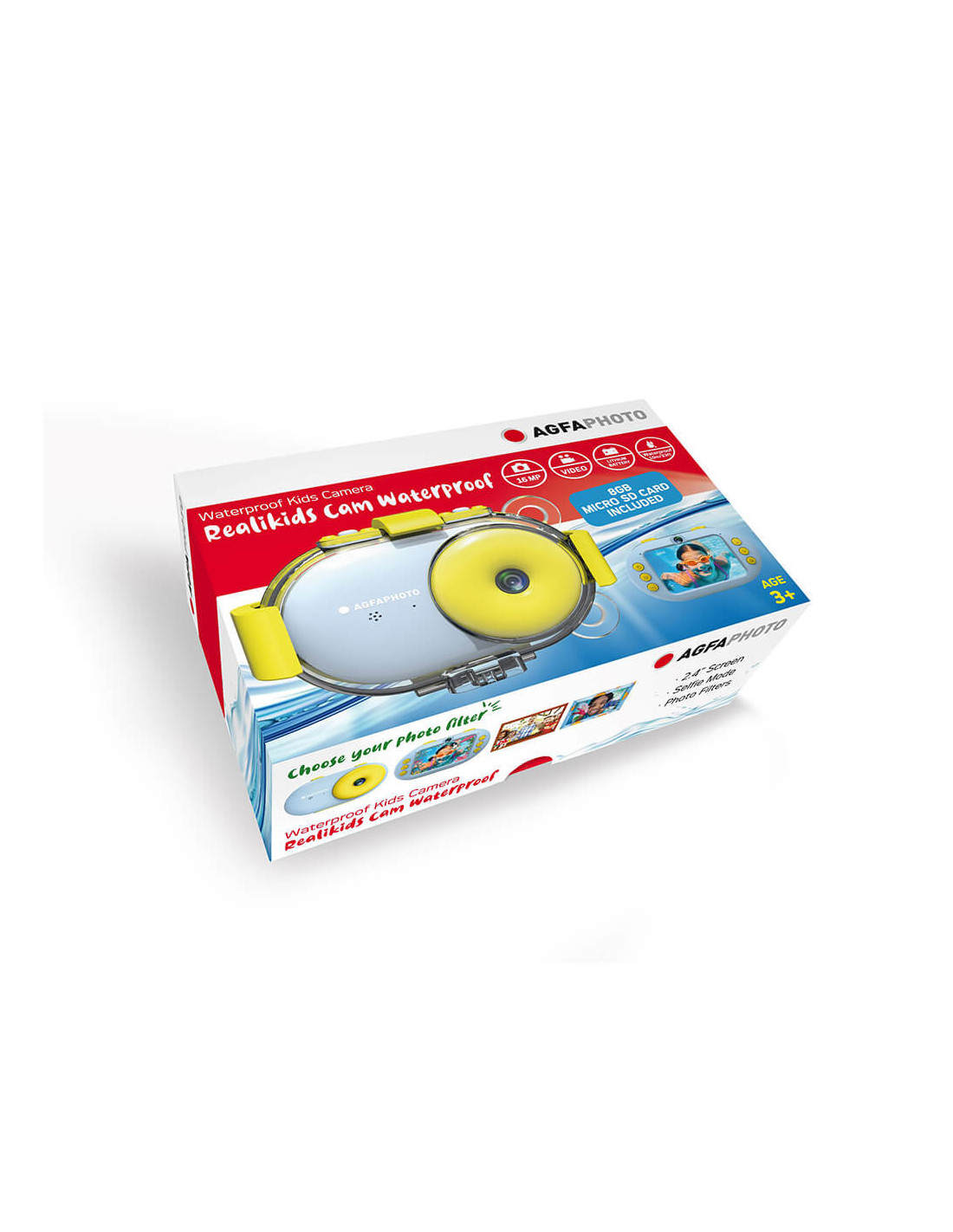 A waterproof digital camera for children with 2.4" LCD screen, waterproof case (10 m) and 8 GB Micro SD card that takes photos and videos in HD quality. The camera also has lots of nice frames and filters to let kids take fun pictures.