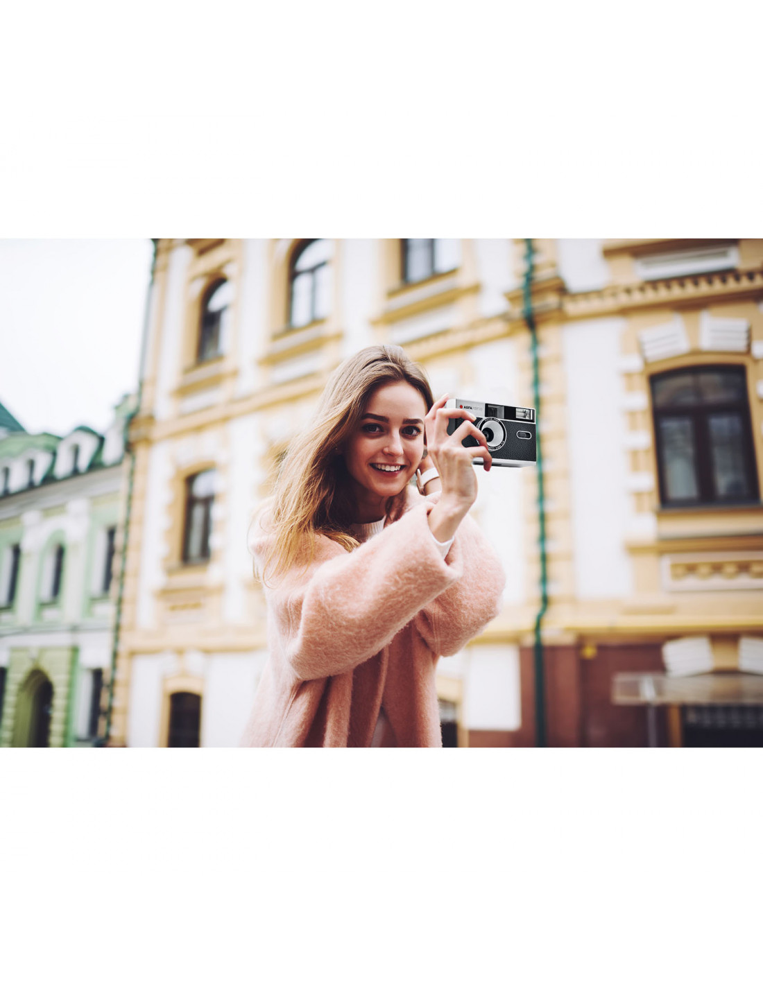 A 35mm film camera from AGFAPHOTO combines retro design with modern functionality.