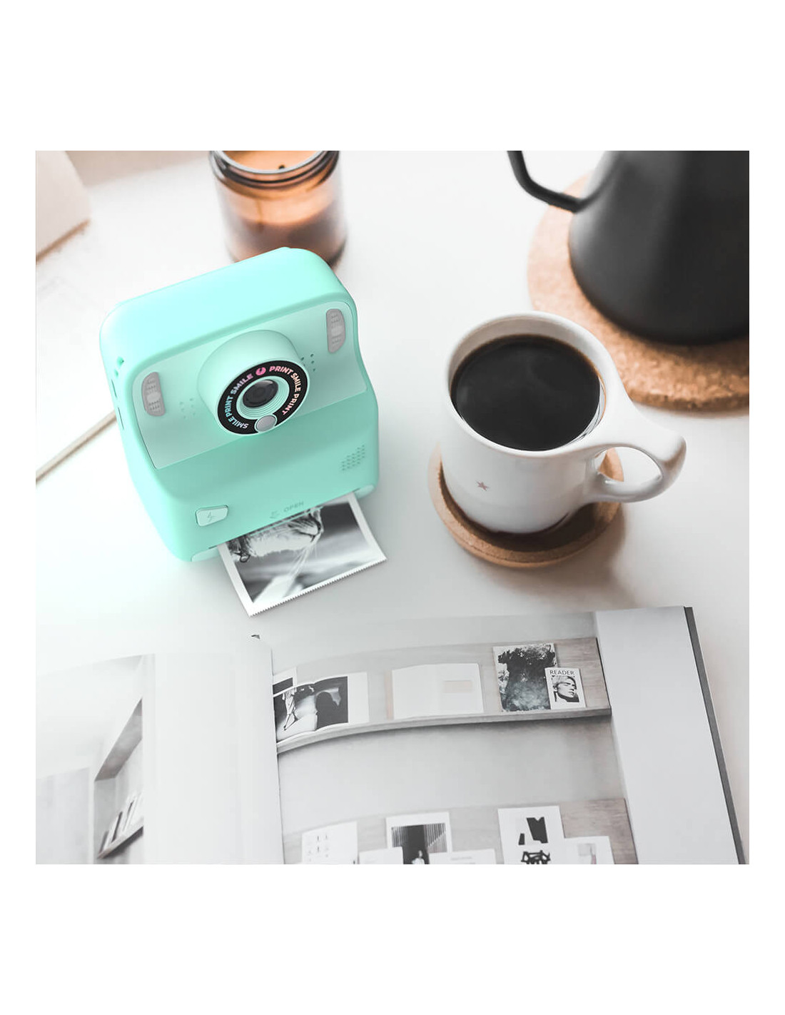 Fang øjeblikket med stil med Mobility on Boards nye digitale kamera med instant print. Udforsk kreativiteten med 5 farvespoler, hvilket muliggør unikke print. Med foto-, video-, spil- og musikfunktioner tilbyder denne enhed med sit legende polaroid-design en komplet oplevelse.