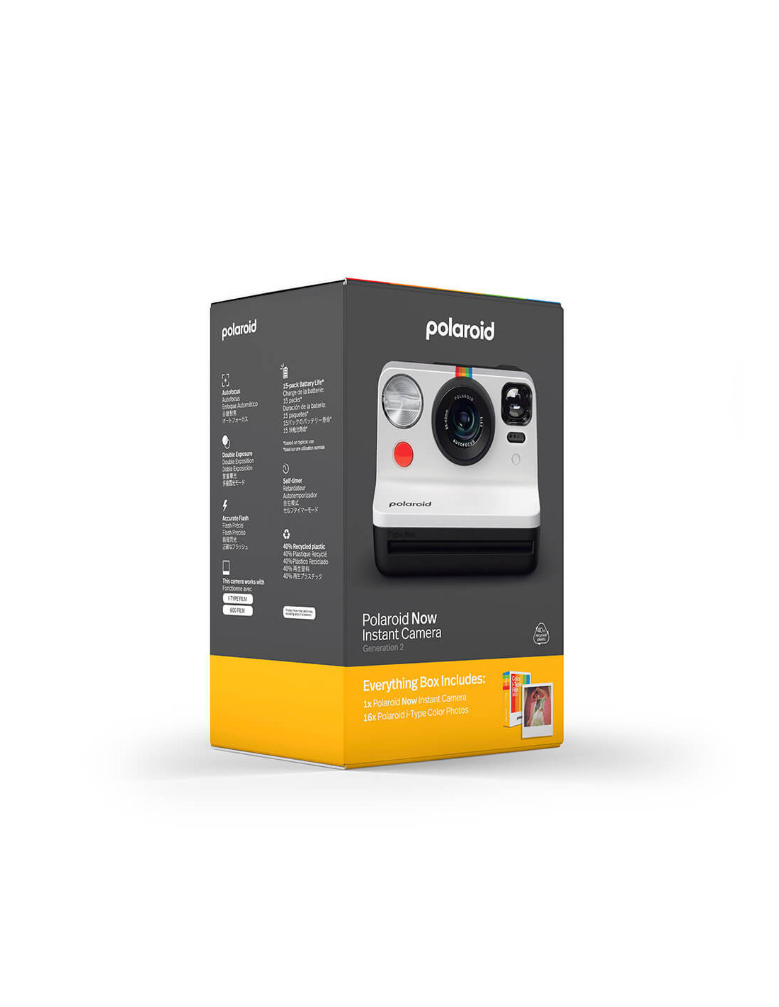 Polaroid Now Generation 2, the Classic instant camera, simply point, click and capture real life – now. Includes a Polaroid Color i-Type Film Double Pack.