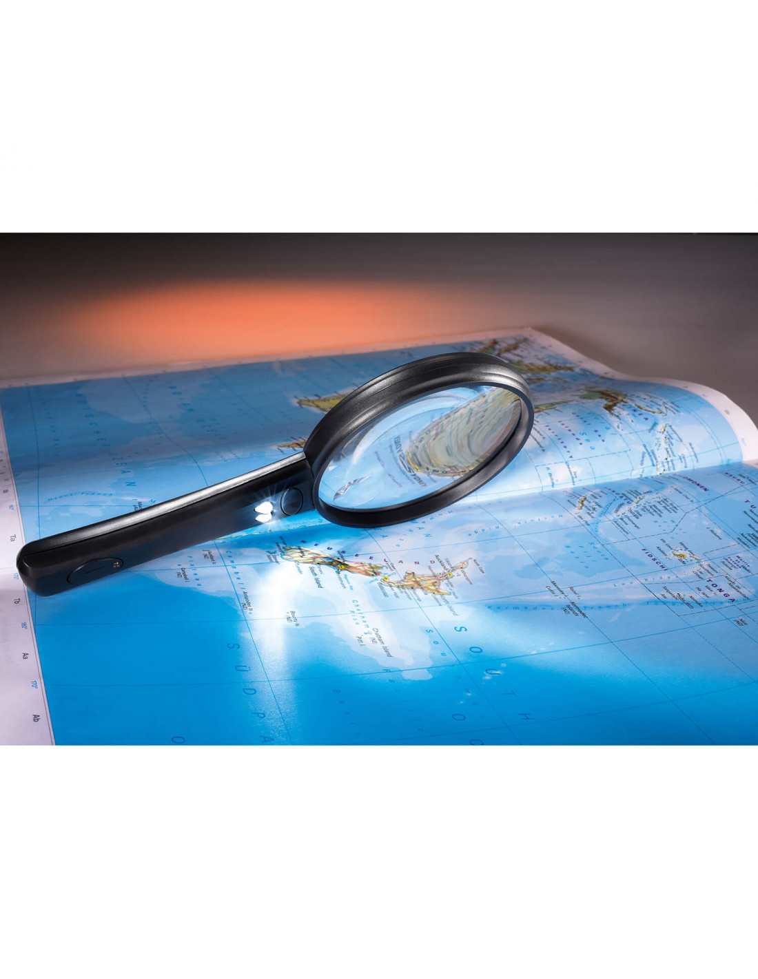 Functional magnifying glass with built-in lighting.