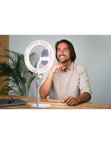 KODAK LED Lighting Desk Ring Light 10" is a compact and easy-to-use light for online videos, video conferencing and presenting yourself for the social media.