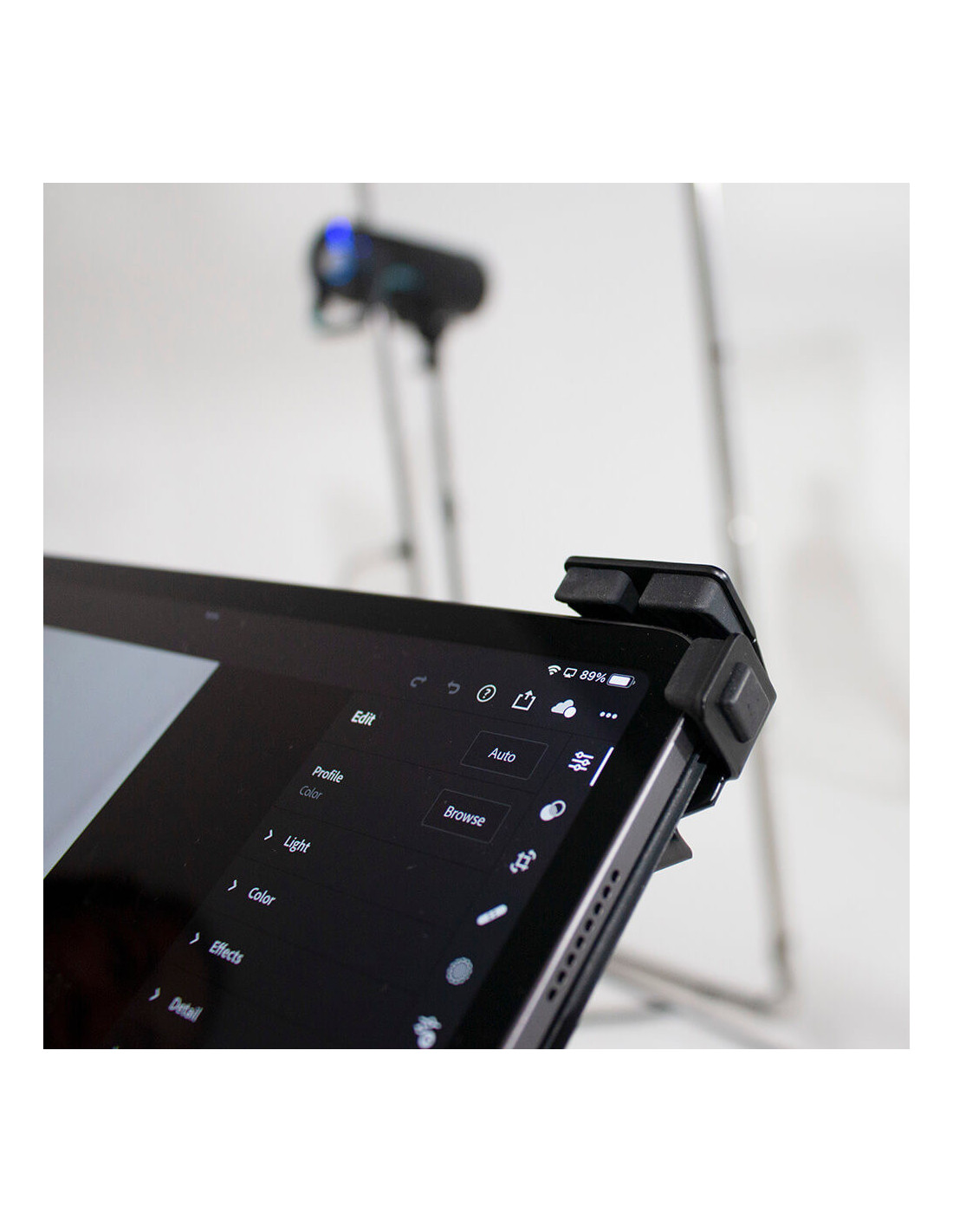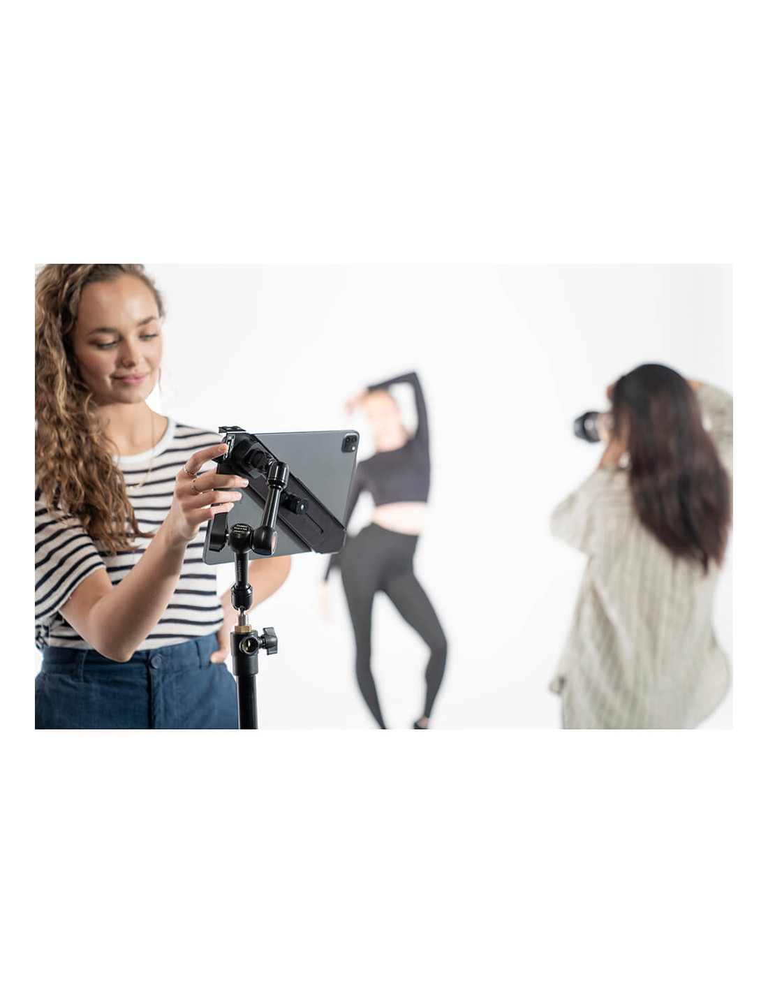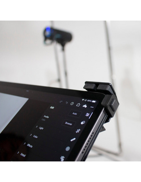 Manfrotto TetherGear Tablet Holder is able to support the very latest tablet devices between 9" and 13" thanks to the adjustable sliding arm design.