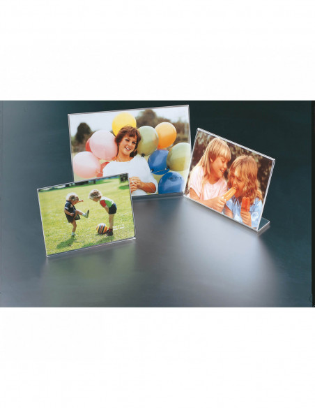 - Simple acrylic frame with a great visual effect - Comes with an L-shaped stand - Ideal for presenting flyers, advertising brochures, etc. in companies; can e.g. be placed on a counter