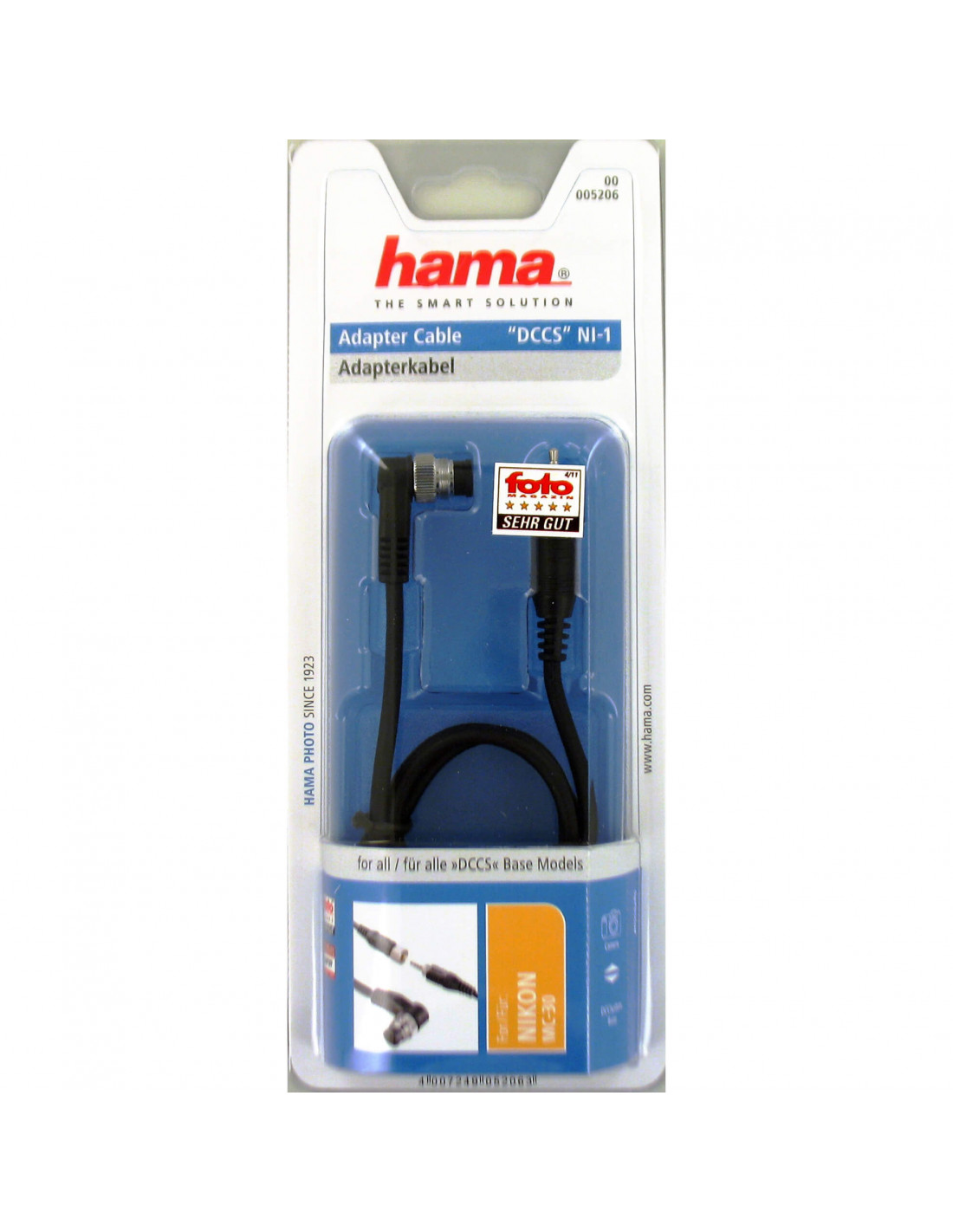 - Connection cable for all Hama "DCCSystem Base" shutter releases - Screwable connection for a secure hold between the cable and remote shutter release - Cable with screw closure - Equivalent to the original camera connection: MC 30 - Suitable for: - Nikon D800/D800E/D4/D3s/D700/ D300S/D300/D200/D100 (only in combination with battery handle)/D3x/D3/D2Xs/D2X/D2Hs/ D2H/D2/D1X/D1H/D1/F 100/F 90/F 90X/F 6/F 5/N90s - Kodak DCS 760/14n - Fuji S5 Pro/S3 Pro