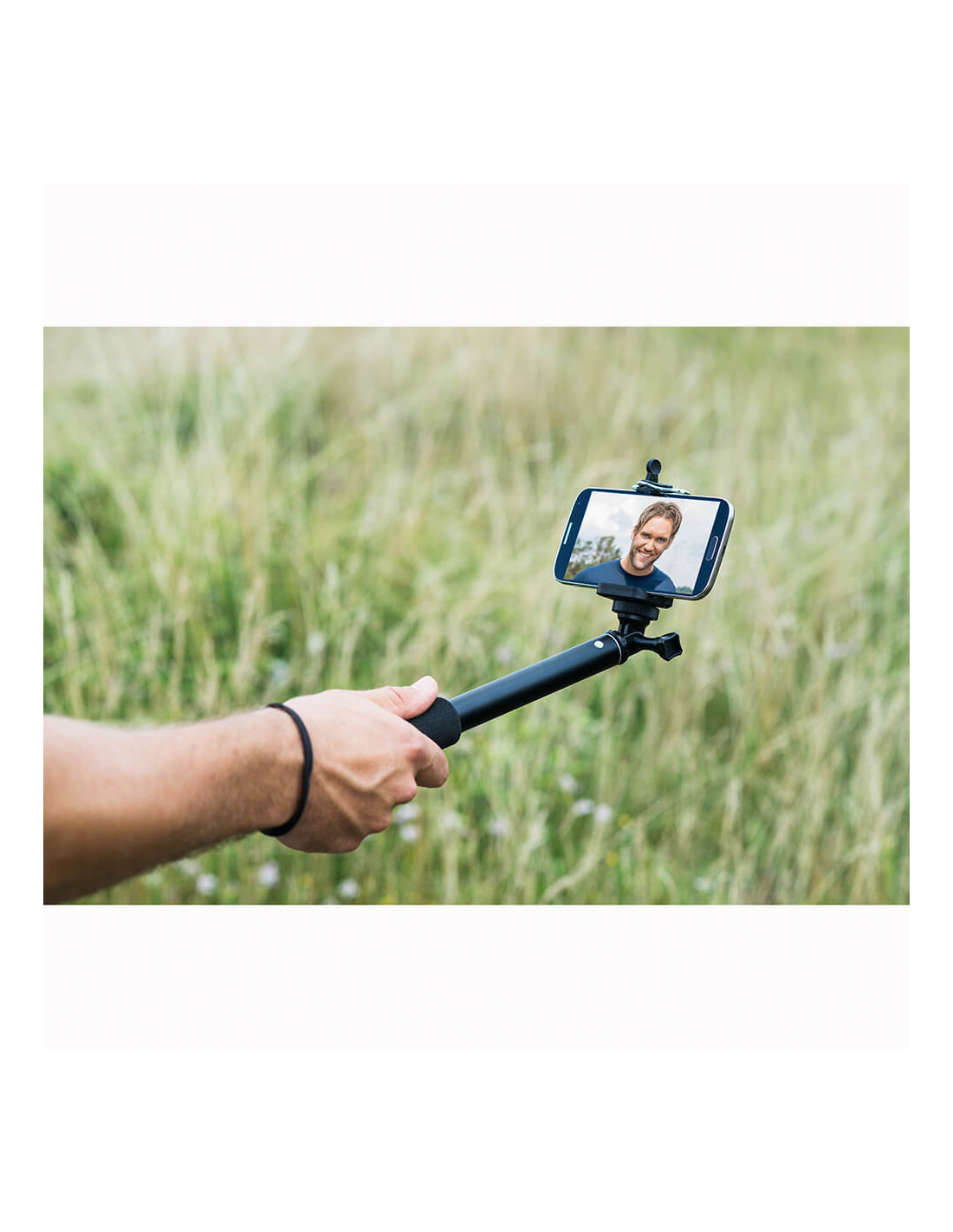 Smartphone holder så alle smartphones kan monteres på et ¼ "stativ mount. Universal holder til enheder uden et stativgevind. Ekstrem fleksibel, for en smartphone med en bredde på 5,5 til 8,2 centimeter (liggende format). Kompakt design. For selfies og video . BEMÆRK: Stativ ikke inkluderet