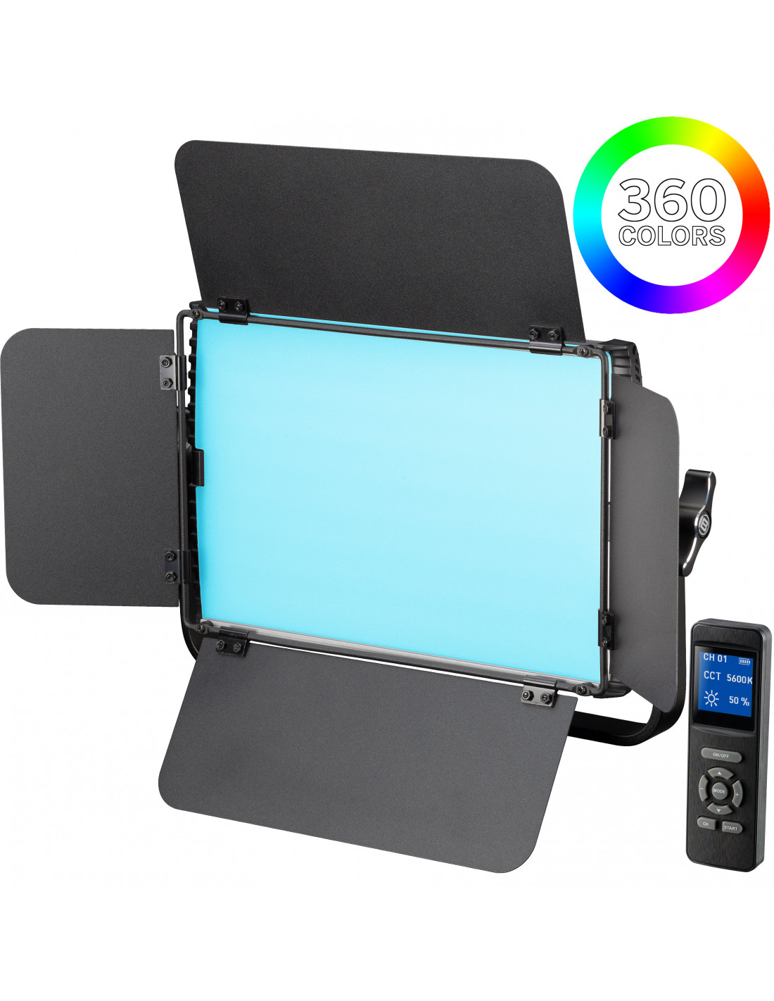 _x000D_ The all-rounder combines the entire spectrum of RGB colours and pure daylight with a total of 681 LEDs and opens up whole new perspectives in the photo or film studio with its slim yet robust design. The powerful 81 RGB LEDs with 0 - 360 RGB full colours and 600 daylight LEDs can be conveniently adjusted in brightness and colour with the remote control. Great and individual coloured lightning effects in the field of photography and videography can be realised easily and in a user-friendly way. With a CRI value of 95, the Daylight range from 3200K to 5600K. On top, the BRESSER BR-S60 RGB LED studio luminaire can be combined and controlled with other luminaires via the DMX connection. The practical flaps of the LED RGB panel luminaire create a successful spot effect.