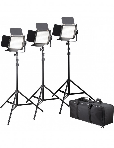 _x000D_ The BRESSER-600MB triple set consists of three powerful and space-saving bi-colour LED panel lights and is the ideal solution for the photo and video studio. Its light weight and compact design make it easy to transport when needed on location.