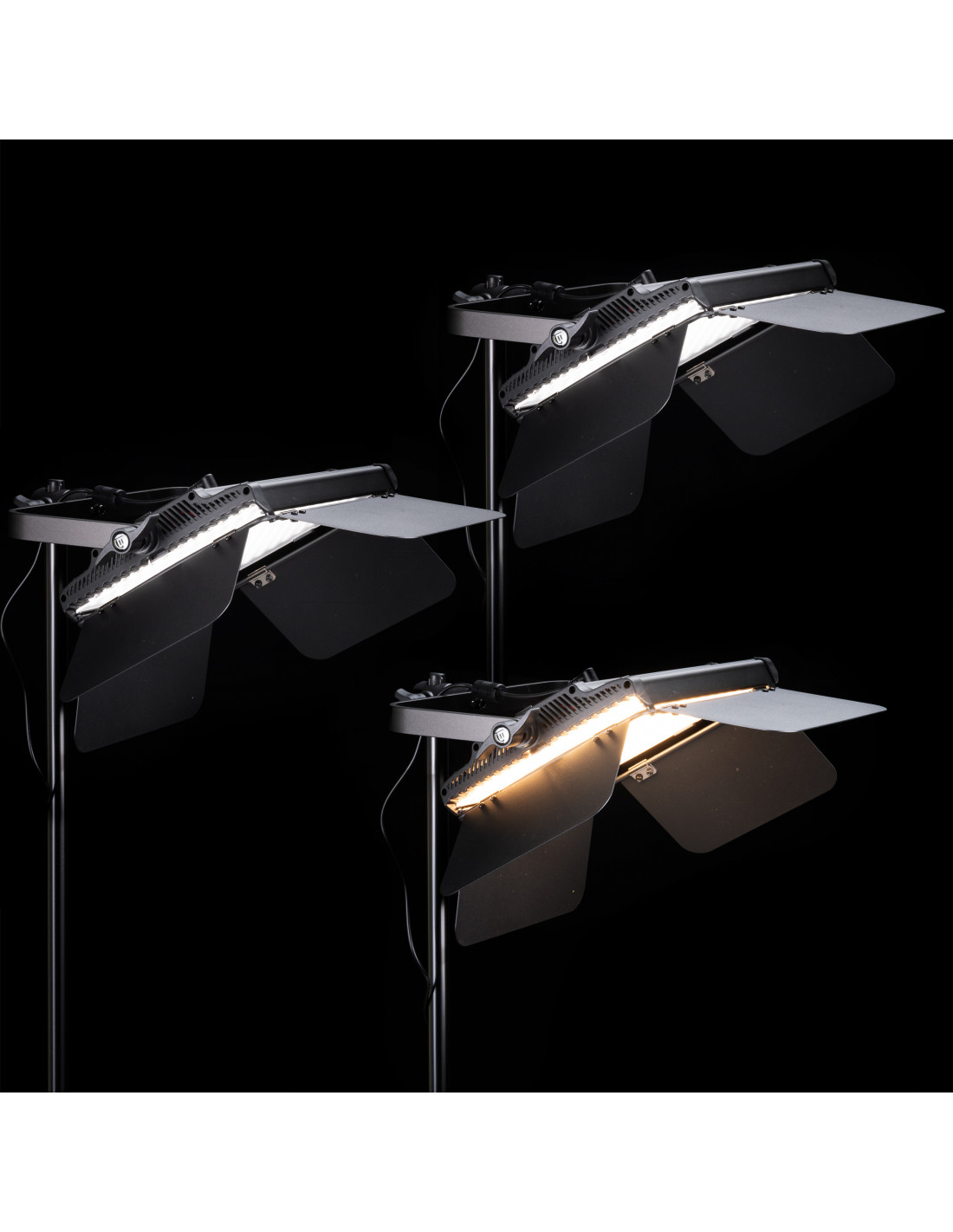 _x000D_ The Bi-Colour panel lights provide a daylight temperature between 3200K and 5600K and the CRI of 95+ allows an optional adjustment to the given lightning conditions, which can be individually aligned and focussed by means of the light flaps.