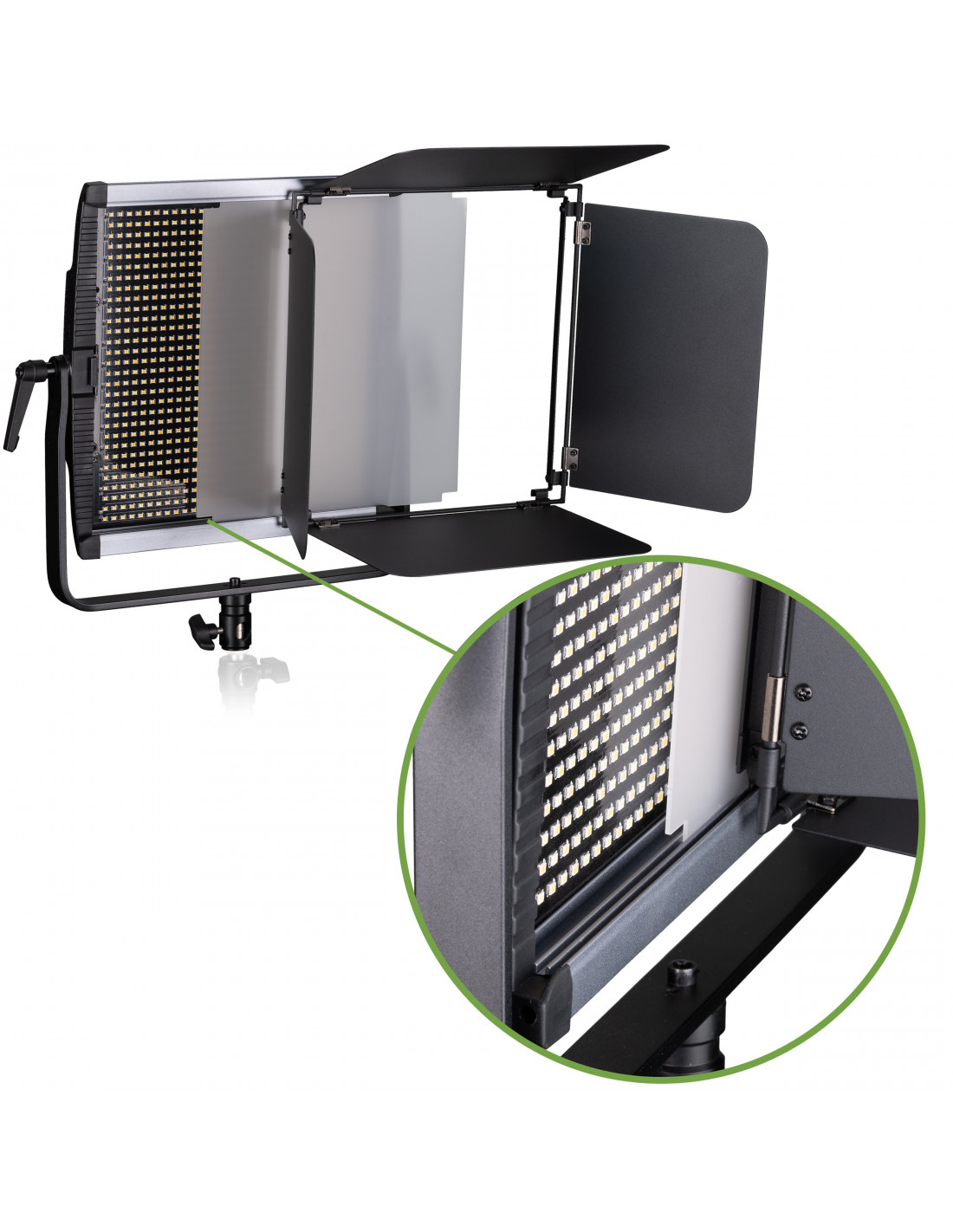 Portable and powerful LED panel light set for perfect illumination in video and photo applications. A practical solution for small studios and on location applications.