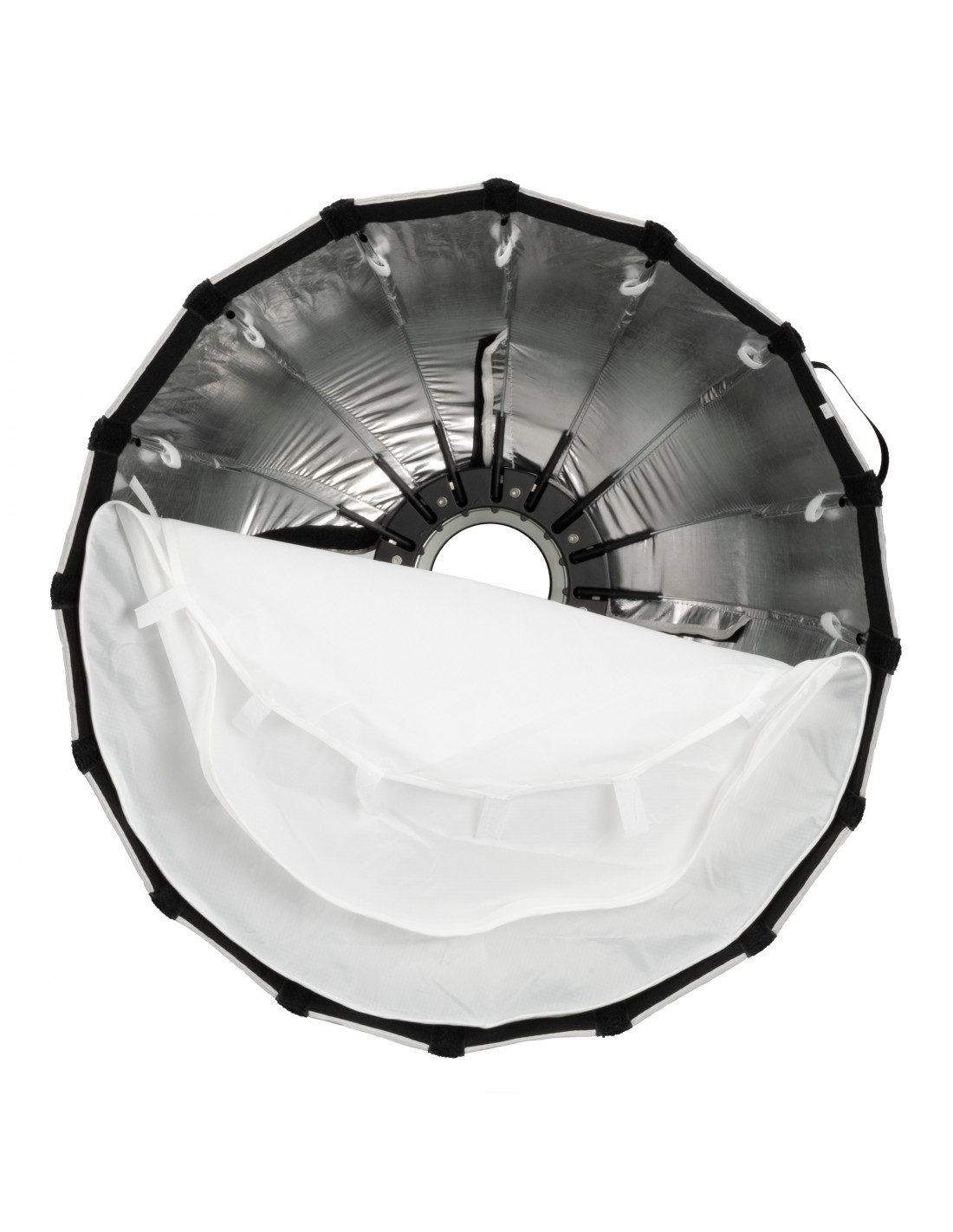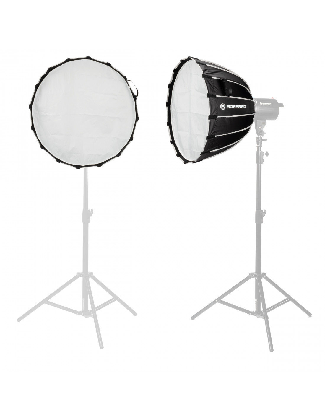The BRESSER Super Quick Parabolic Softbox 60 cm not only impresses with its quick set-up, but also with its durable and high-quality design with stable ribs.