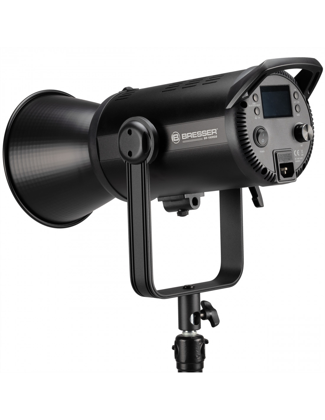 _x000D_ The lamp is made of brushed metal that is both durable and helps dissipate heat efficiently. A built-in safety function protects the unit from overheating. The internal cooler can be switched on or off as required. The Bresser BR-180RGB runs on mains power. The unit comes with a standard reflector, protective cover for the COB LED and a mains power cable.