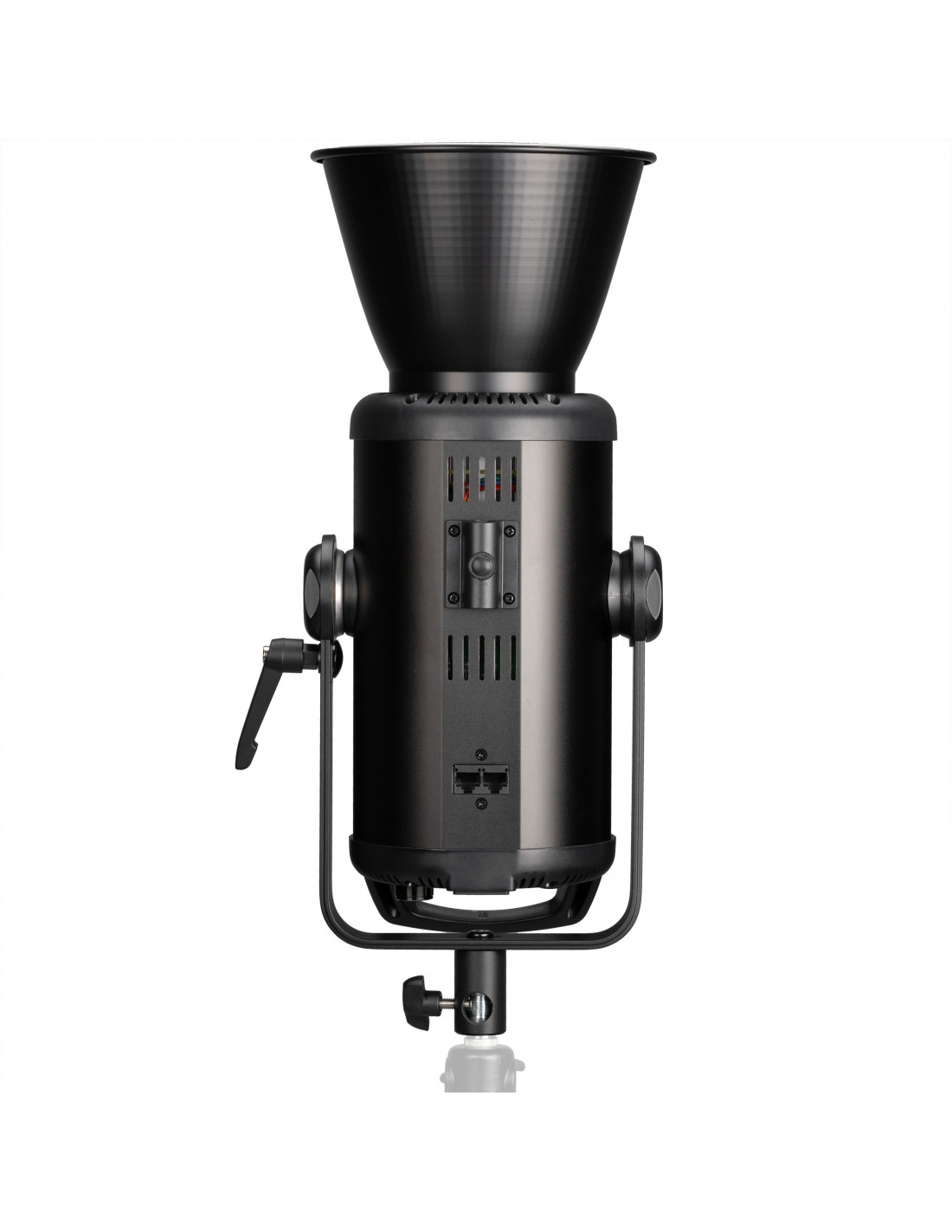 _x000D_ Experience full control from your smartphone. Although you can make adjustments locally on the video lamp, you can also change these settings wirelessly up to a distance of 30 metres with an optional 2.4G remote control. In addition, the lamp features bluetooth so it can be controlled via APP Control. Two DMX512 are located at the bottom of the housing.