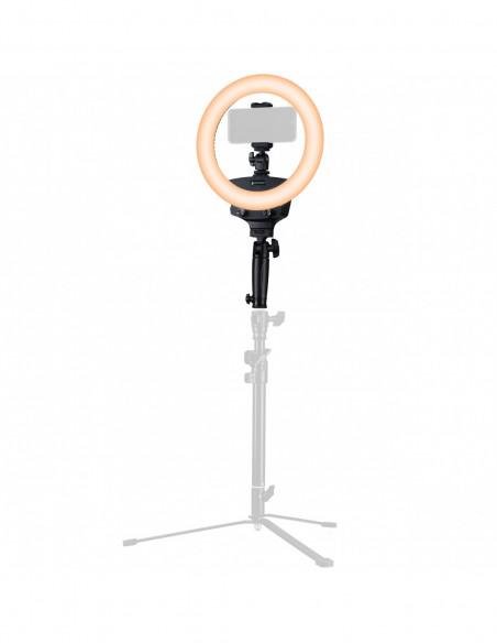 _x000D_ In the age of the mobile phone, the flexible smartphone holder with ball-and-socket joint is of course a must. More freedom on location: Optionally, the ring light can be powered wirelessly via an NP F550/750/970 V-Lock battery (not included).