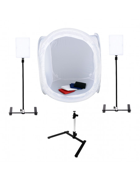 The 60x60x60 cm large light tent allows you to take professional product photos without annoying light reflections. Thanks to the LED lamps included in the set, providing the perfect lighting for your products couldnt be easier.