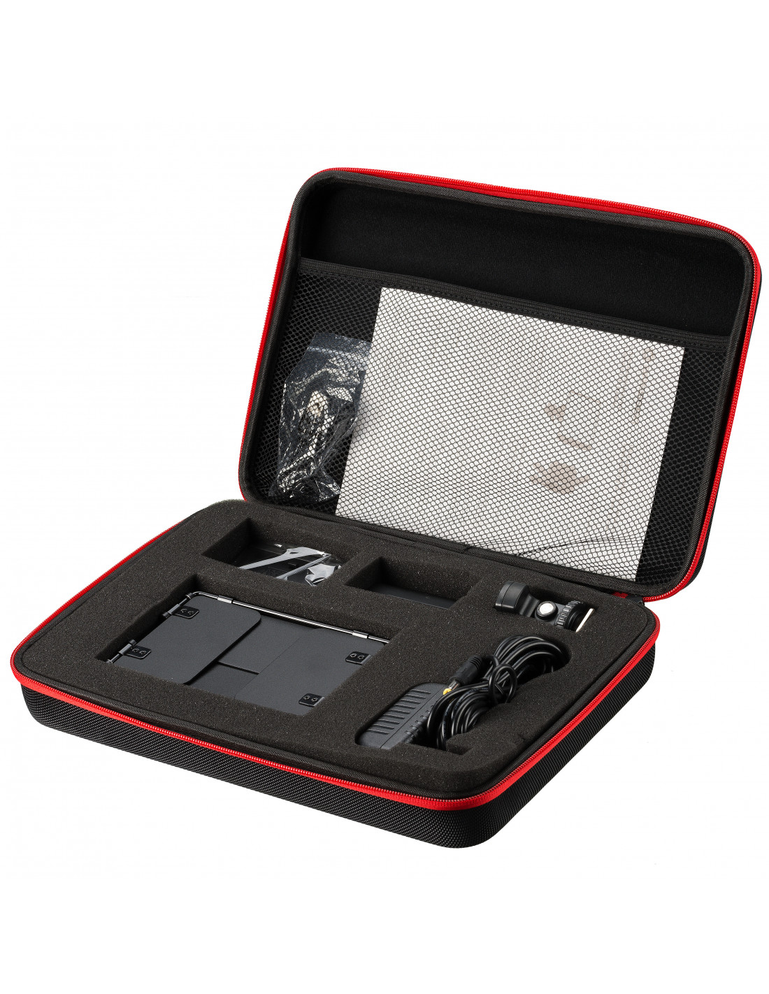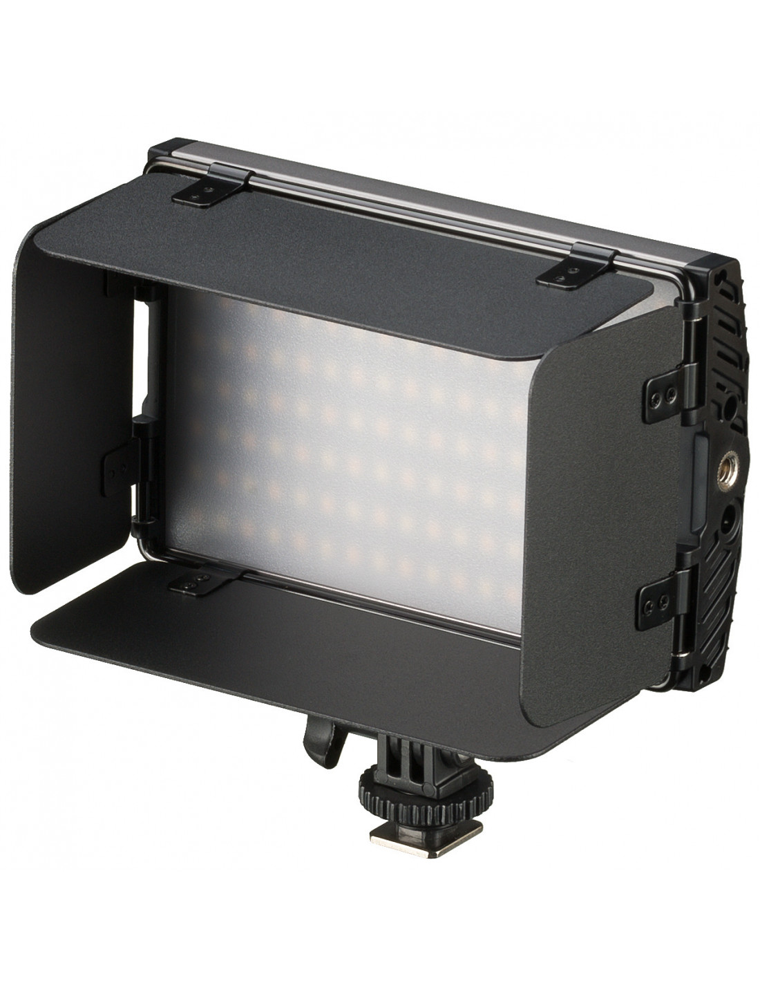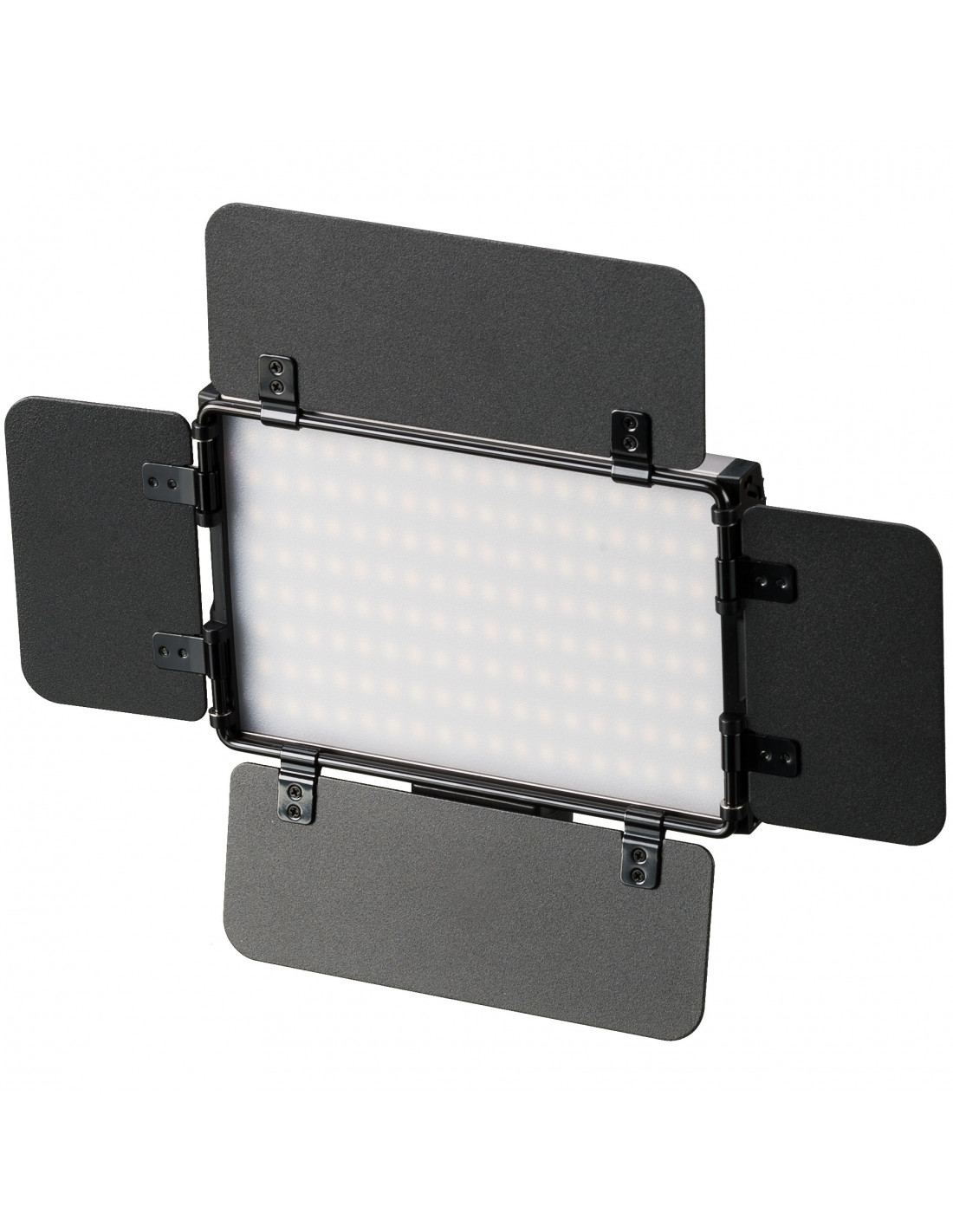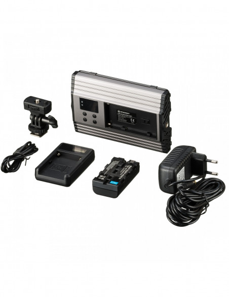 _x000D_ The 15W output power provides a surprising light output. The colour temperature between 3200 K and 5600 K as well as the brightness can be adjusted continuously from 10 to 100%. A mains adapter is included in the scope of delivery. On the back is the connection for the NP-F550 battery supplied, so that the luminaire can also be used on site.