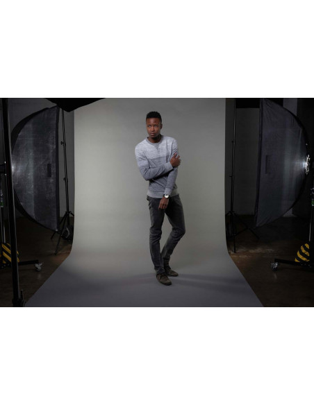 Papiret er sat på en fast kerne af pap, så det kan monteres på hooks og expandere, eller på baggrundsstativ.