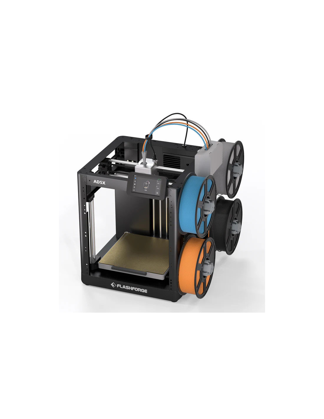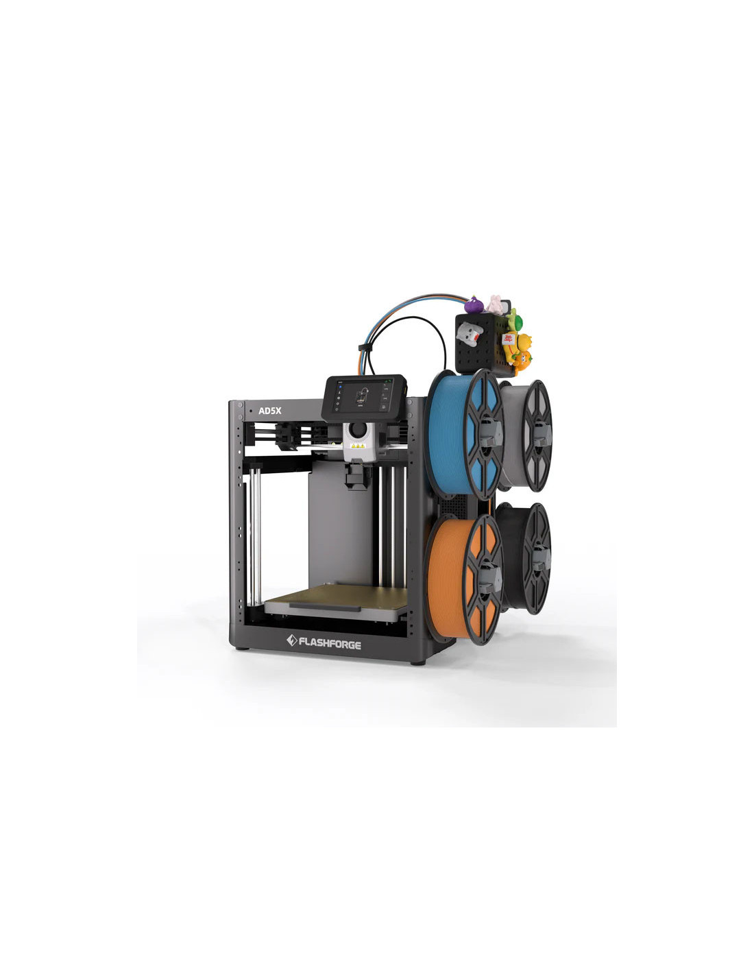 The FLASHFORGE 3D printer offers smart multi-color printing with quick setup and high speed.