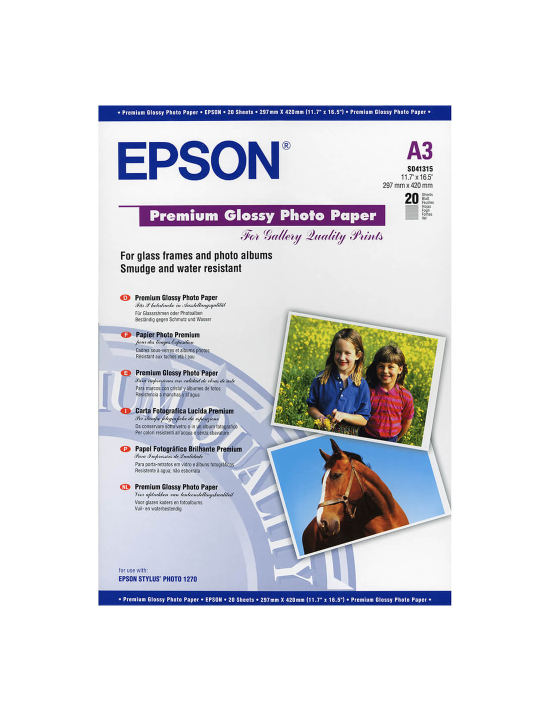EPSON A3 Premium Glossy Photo Paper 255g, 20 sheets