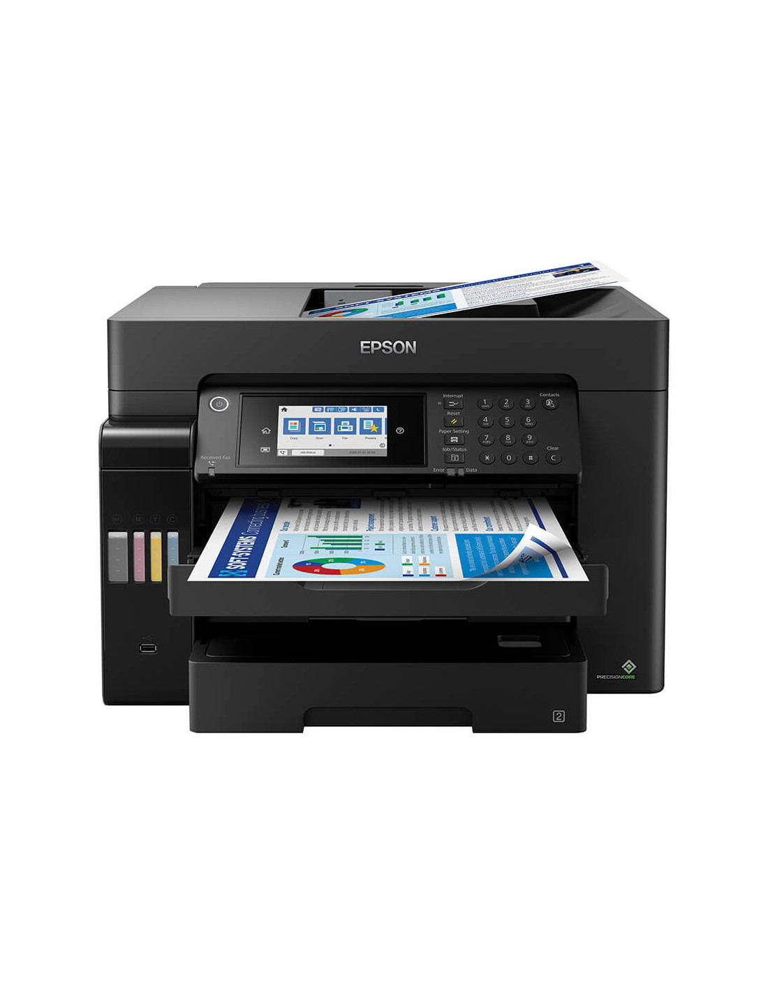 A3+ print, scan, copy and fax with this fast, feature-rich EcoTank. It offers a low cost per page, 550-sheet tray capacity and 50-sheet ADF.