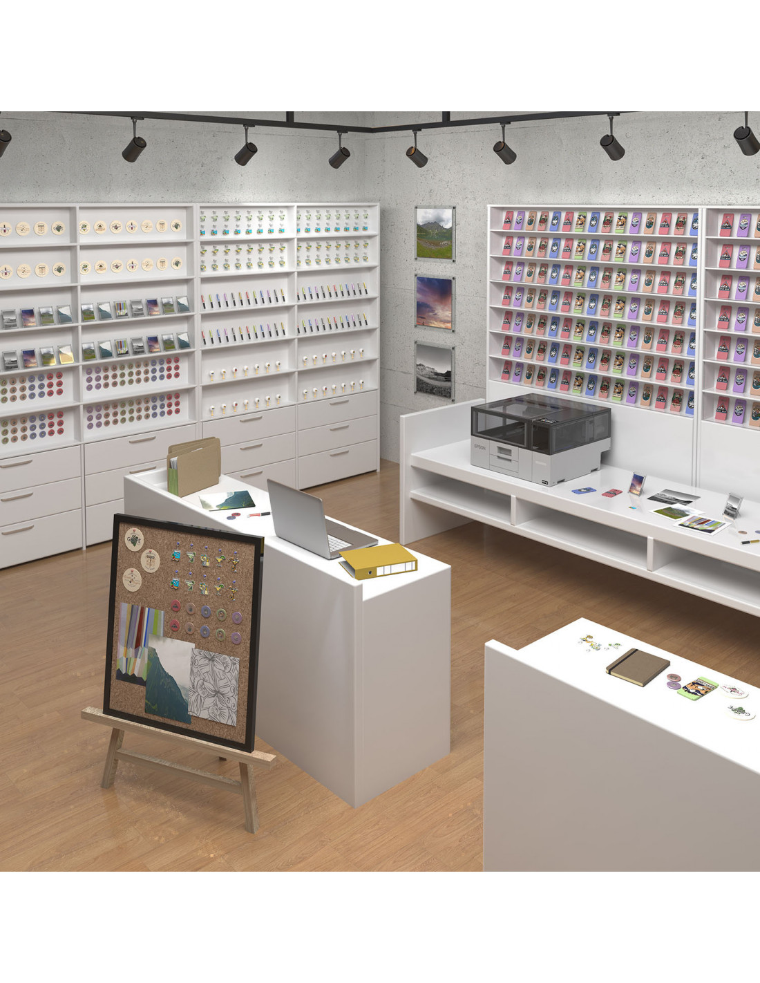 The EPSON printer offers affordable and compact UV printing for personalized products.