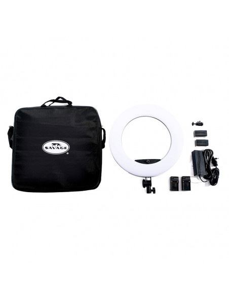 Whether you're looking for picture perfect catchilights, colored fill and hair lighting, or even exiting special effects for your videos and vlogs, the Savage RGB Tabletop Ring Light has you covered! Color correct from 3200K - 5500K to mach available light in any room. Control remotely with the free Savage Light Manager mobile app (available on the Apple App Store and Google Play Store) and experiment with 25+ light patterns - including syncing with your music files! Attach the included swivel mirror to the inside of the adjustable holder and position it at any angle with the flexible arm mount when recording. The tabletop stand extends from 10'' (25cm) to 17'' (43cm) to accommodate any desk height.