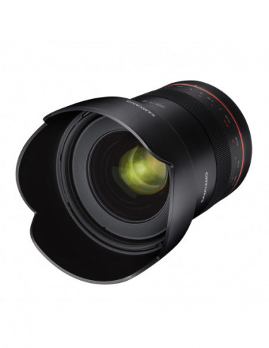 . The lens is designed for 35mm full-frame sensor cameras for crystal clear photo and video shooting. It is perfect for the latest DSLR and DSLM cameras with high pixel count. The excellent optical resolution of the lens allows photos of over 50 megapixels and allows filming in 8K.
