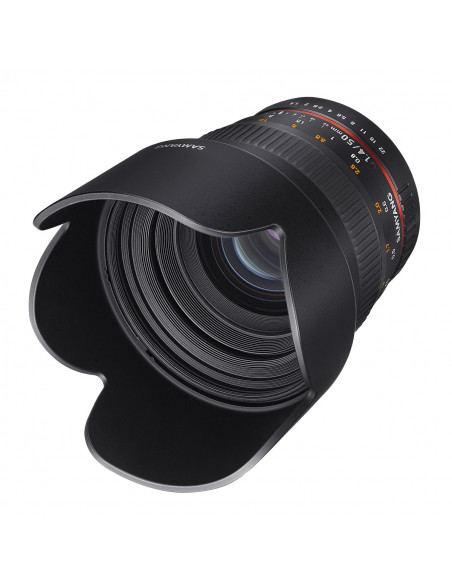 This high quality, fast lens from Samyang is designed for demanding photography. The aperture can be adjusted in half steps from 1.4 to 22, and the focus adjustment is smooth and easy.