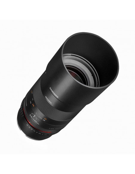 Used on an APS-C camera, it produces an angle of view of 15.4°, which is roughly equivalent to the image impression of a 150 mm lens. The very practical lens speed of 2.8 does not change. It not only provides an extremely bright viewfinder, but also the possibility of cropping through the smallest depth of field. The lens is very well corrected and convinces with a very high and distortion-free imaging performance. Of course, all lens surfaces are multi-coated to increase the contrast of the images and to avoid reflections if necessary. Everything is rounded off by a precise mechanism, clear click-stop aperture values in a high-quality metal mount. Manual focusing moves comfortably and easily.