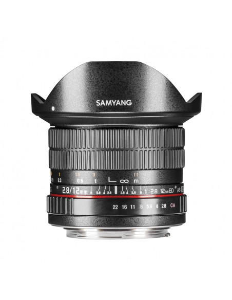 The 12mm/2.8 from Samyang is a full-frame outstanding fisheye lens. With a diagonal angle of view of approx. 180° in full format, it brings a huge field of view and is therefore perfectly suited for overviews, interiors, confined spaces, as well as for reportage in such places. The lens puts the subject in the right light. With a lens speed of 1:2.8, the lens has a large initial aperture. Due to the short focal length and the low magnification, it is characterised by a very large depth of field.