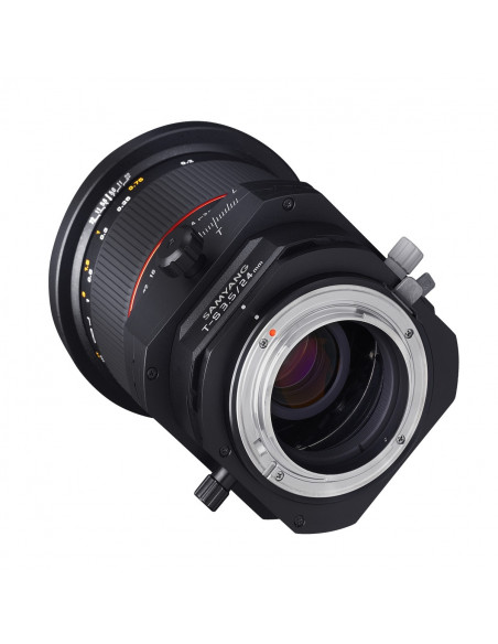 The Samyang 24 mm wide-angle lens with tilt and shift function offers a multitude of creative design possibilities. Whether optical illusions, e.g. in miniature optics, or unusual image formats with selective blurring, the Tilt - Shift lens realises all this in the usual high-quality way. The wide-angle lens offers a fixed focal length of 24mm and a high lens speed of 1:3.5. A total of 16 coated lenses (including two aspherical and two ED lenses) ensure good image quality. The aperture setting and focusing are manual.
